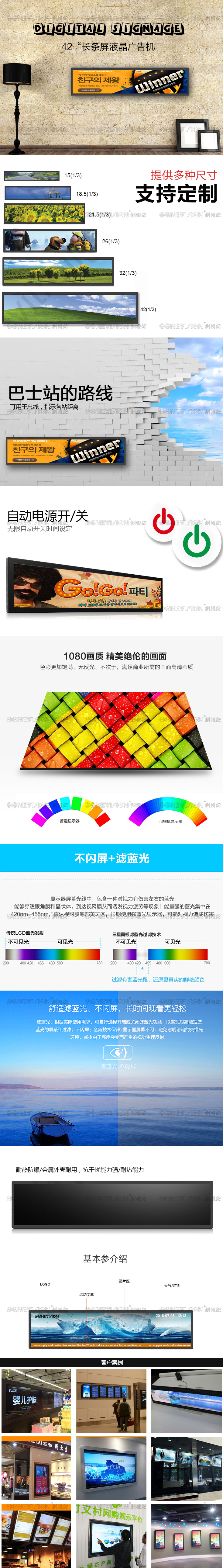 如今,隨著液晶顯示技術(shù)的發(fā)展,出現(xiàn)了新型的長條液晶產(chǎn)品,長寬比例超過3:1的液晶長條屏廣泛應(yīng)用于各行業(yè)領(lǐng)域,在市場上大受好評。