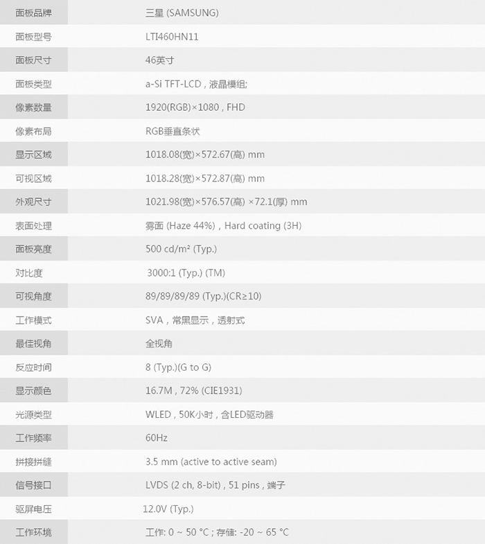 液晶屏尺寸        55 寸TFT真彩液晶屏