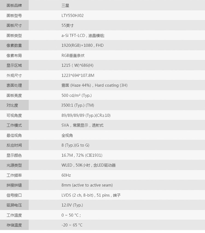 液晶屏尺寸 55 寸TFT真彩液晶屏