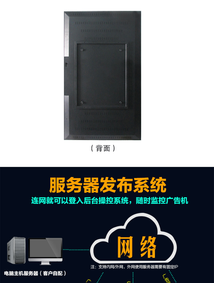 6、分屏功能:可以將圖片+視頻+滾動字幕同時多畫面顯示,這樣獨特的顯示給廣告運營商帶來更多商機,可實現多家媒體的廣告同時播放。