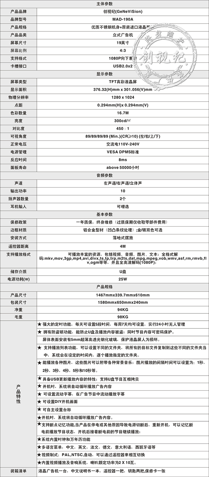 液晶屏尺寸        19寸TFT真彩液晶屏