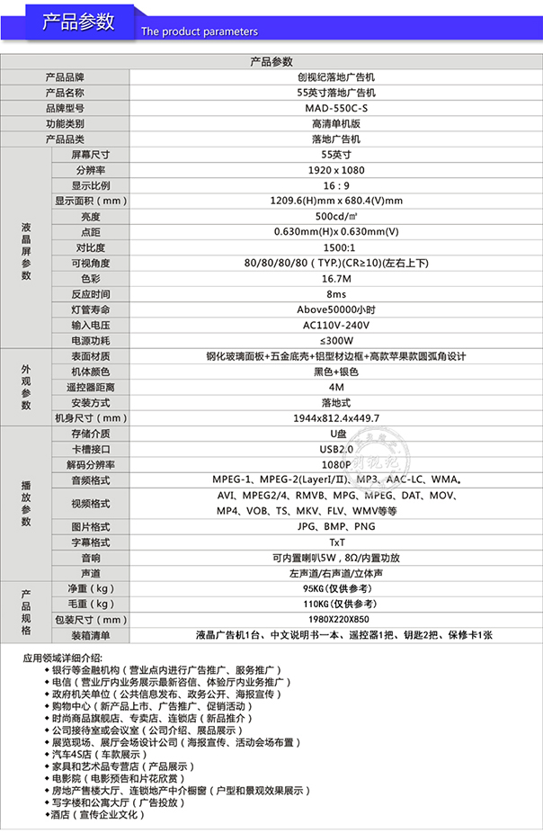 液晶屏尺寸         55 寸TFT真彩液晶屏