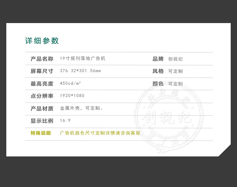 產品名稱:19寸網絡報刊廣告機 品牌: 創視紀