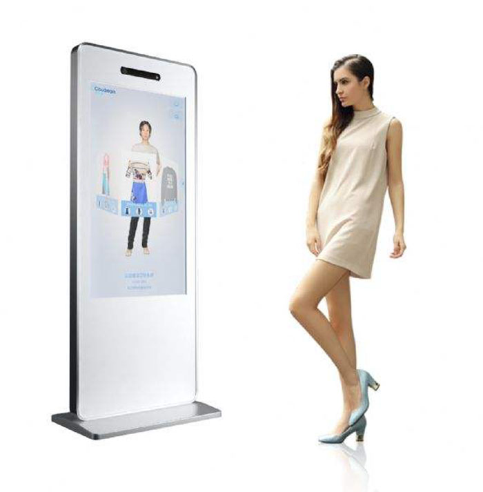 走到鏡子前的用戶人臉被自動識別,掃描后鏡子內會直接變幻出另一個虛擬用戶,這個虛擬用戶會無限貼近用戶本人,同時可快速試穿各種陳列在虛擬貨架上的服裝。