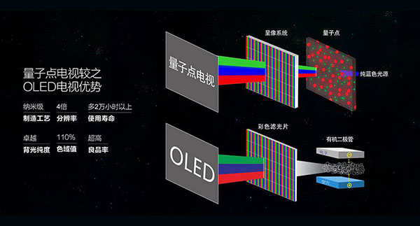 量子點是什么?可能很多人最近都開始接觸這個詞匯,普通的液晶顯示有很多量子點升級產品,到是這種產品的真實含義是什么呢?其實目前的量子點電視就是液晶電視+量子點背光薄膜的一種,其本身還是液晶電視。當然量子點本身是會發光的,因此其實僅利用量子點材料本身就可以實現成像,但是目前這種產品還很不成熟。