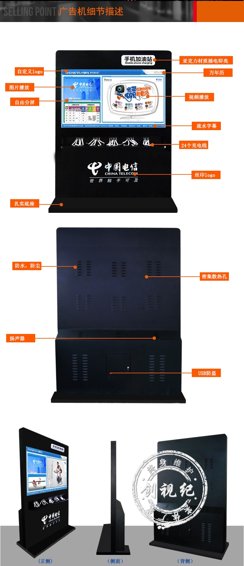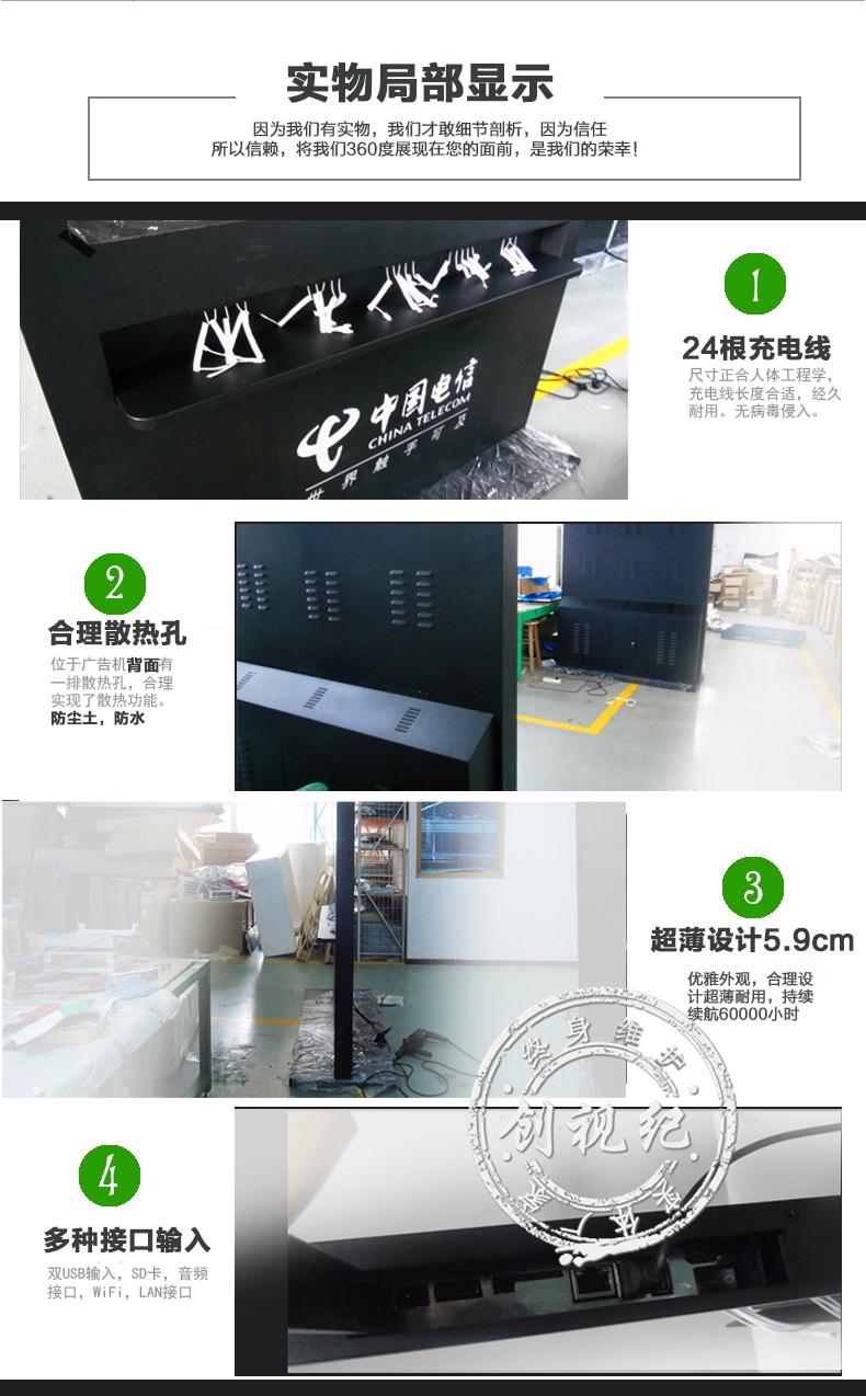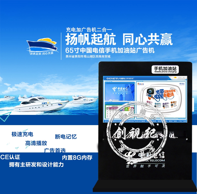 65寸電信充電廣告機/充電必備廣告機/手機充電加油站