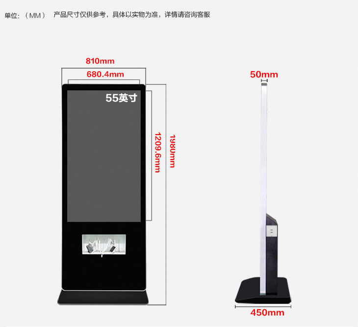 液晶面板 | 尺寸 | 55寸(可定制) |