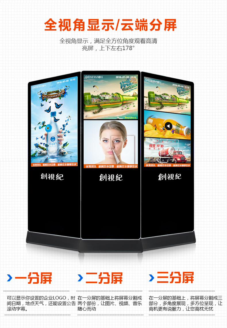 其一,留意屏幕清洗。日常生活中一定保持定時給廣告機“潔身”的習慣,可以用專用藥水噴灑在液晶廣告機屏幕上,然后用潔凈的白布輕輕擦拭。盡量不用使用水份太重濕布,濕布水份太重容易使水份停留在屏幕上,通過邊緣水進入屏內可導致系統短路,廣告機無法正常工作。主張選用眼鏡布、鏡頭紙等柔軟擦洗物對屏幕進行擦洗,避免對廣告機屏幕形成不必要的劃傷。
